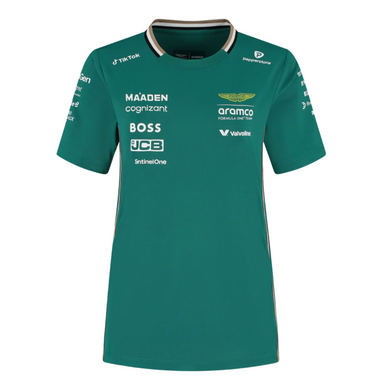 Women’s version of the official 2025 Team Replica T-shirt, as seen worn throughout the 2025 Formula One® season. The Women’s T-shirt comes in a female fit, with a performance moisture wicking fabric, textured knit side panels, and features all the official 2025 Aston Martin Formula One® Team and partner branding.